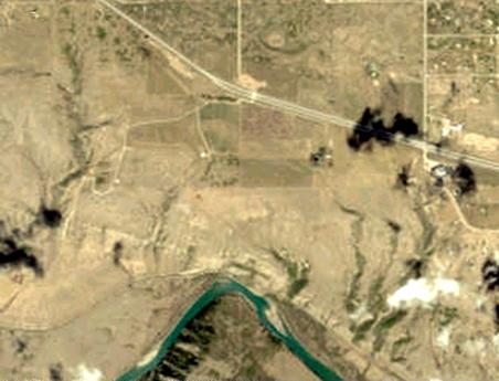 Рис.55. Фрагмент детального космічного знімку відрізку долини річки Еlbow на захід від міста Калгарі (http://www.spaceimaging.com/gazette/) |