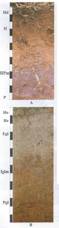-НРm-перехідний, поглинений(метаморфізований),рівномірно бурий або коричнево-бурий, світліший від попереднього, грудкувато- горіхуватий, ущіль- нений