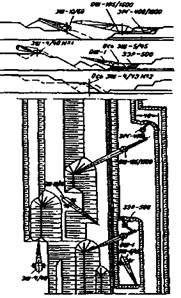 На Іршанському гірничо-збагачувальному комбінаті розкривні породи розробляються за ускладненою безтранспортною схемою. При цьому планування розкривних порід здійснюється шляхом заповнення міжгребеневих западин відкосів хвостами збагачення. Після цього поверхню відвалів розробляють бульдозерами і висаджують ліс за схемою, яка наведена на рис. 8.2.