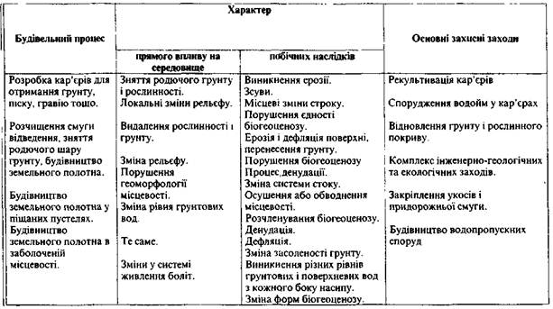 Для запобігання таким змінам під час будівництва доріг застосовується комплекс заходів, які наведені у табл. 8.7.