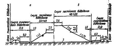 Ширину смуги відведення визначають за розмірами підошви насипу і виїмок по верху з урахуванням бокових і забанкетних канав, банкетів та запобіжних смуг завширшки 1 м з кожного боку дороги.