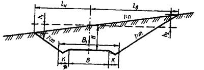 Рис. 8.2. Схема розбивки поперечного профілю дороги на косогорі (за В.П. Старовойдою і П.П. Дзюбою, 1987)