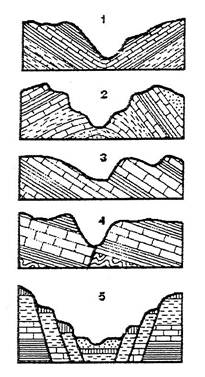 Долини дуже чутливо реагують на зміни геологічної будови територій, через які протікає ріка. Лише на порівняно невеликих ділянках з горизонтальним заляганням однорідних за літологією пластів зустрічаються нейтральні долини. У переважній більшості випадків морфологія долин прямо залежить від структурних особливостей території (рис.2).