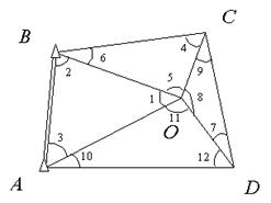 Для оцінки точності мережі тріангуляції обчислюють середню квадратичну помилку кута, вага якого прийнята за одиницю. З метою оцінки точності окремих елементів мережі складають вагові функції для цих елементів. Як правило, вагову функцію складають для найбільш “слабшого” елементу мережі. Таким найбільш “слабшим” елементом є елемент найбільш віддалений від вихідних пунктів. Розглянемо мережу тріангуляції (рис. 2.47).
