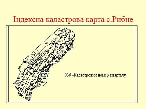 В дипломній роботі пропонується структура індексації земельних ділянок для села Рибне Косівського району. А кінцевим результатом планується створення першої версії Автоматизованої системи кадастру.
