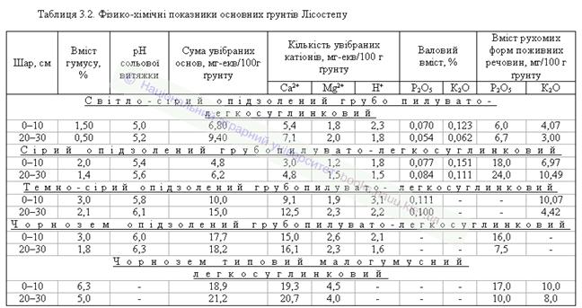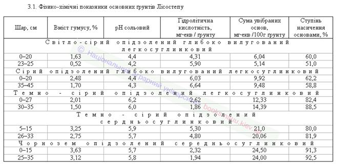 Таблиця 3.2. Фізико-хімічні показники основних ґрунтів Лісостепу