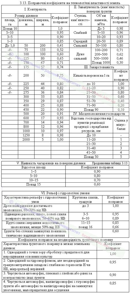 3.13. Поправочні коефіцієнти на технологічні властивості земель