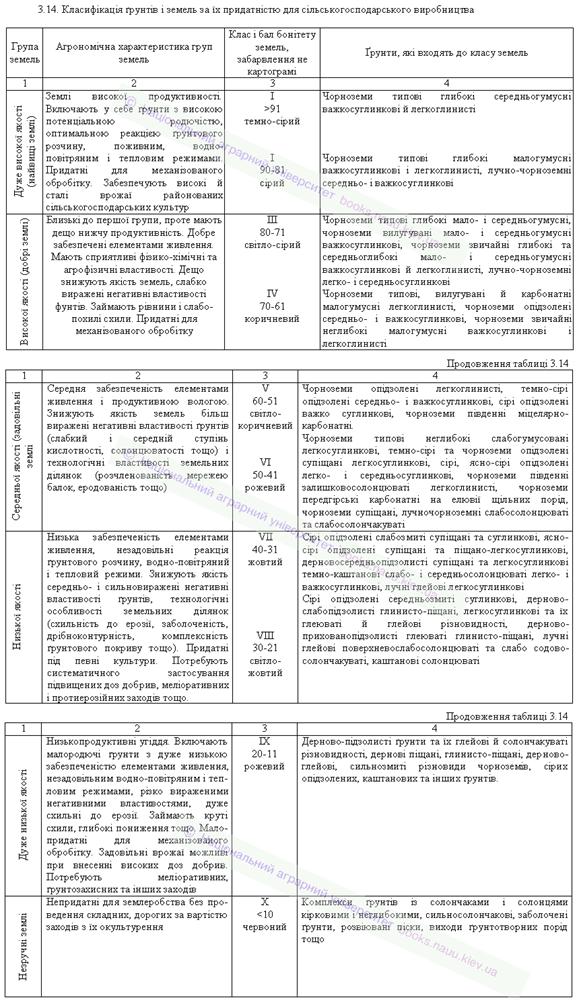 3.14. Класифікація ґрунтів і земель за їх придатністю для сільськогосподарського виробництва