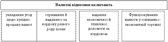 Валютні відносини — це сукупність валютно-грошових і розрахунково-кредитних відносин у міжнародній сфері (рис. 13 .1.1.).