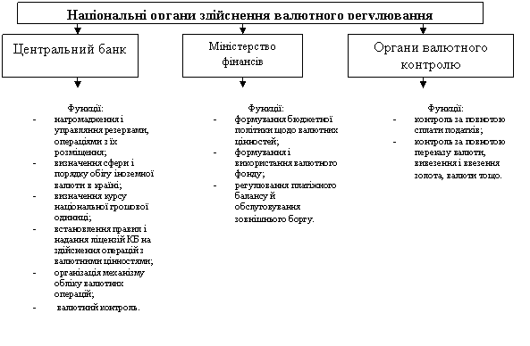 Рис. 13.4.1. Національні органи здійснення валютного регулювання