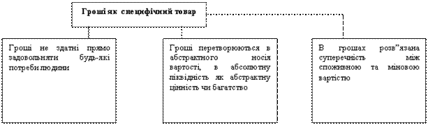 Рис.1.2.1. Особливості грошей як специфічного товару