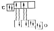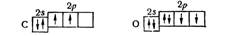 Як показує ця схема, одна з орбіталей зовнішнього електронного шару атома карбону лишається незайнятою електронами. Отже цей атом може бути акцептором електронної пари. Атом же кисню зберігає на одній з р-орбіталей неподілену електронну пару і, отже, має електроноподібні властивості. В результаті утворюється ще один ковалентний зв'язок — донорноакцепторний: