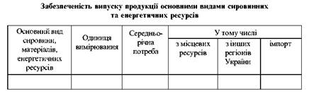Цей розділ бізнес-плану доцільно будувати за такими окремими фак-торами забезпечення виробництва: