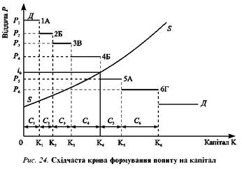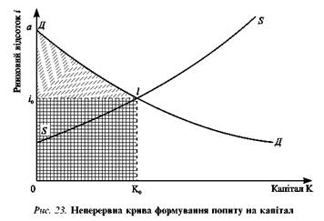 Теоретично крива ринкового попиту на капітал є кривою породженого попиту з боку підприємств, тобто сукупною кривою маргінальної при-бутковості капіталу, вкладеного з метою одержання прибутку в цілому.