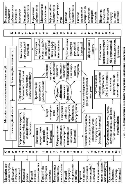 Виходом із цієї ситуації, на наш погляд, є обґрунтування раціональної інвестиційної політики, в якій чільне місце посядуть система державного регулювання й реформування структури власності на основі приватизації та концепція технічного переоснащення промислового виробництва із залученням коштів іноземних інвесторів. Така концепція забезпечить підвищення інвестиційної активності, але за наявності певних економічних передумов (рис. 52):
