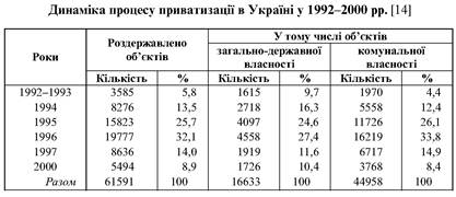 Так, кількість об'єктів, що підлягають приватизації, зменшується з кожним роком (табл. 1). Якщо в 1994-1996 pp. вона вимірялася кількома тисячами підприємств, то в 2000 р. було приватизовано 1726 підприємств, з яких 755 — це середні і великі об'єкти.