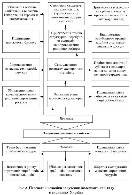 Аналіз соціально-економічних досягнень деяких зарубіжних країн дав змогу оцінити переваги і недоліки залучення іноземного капіталу (рис. 4).