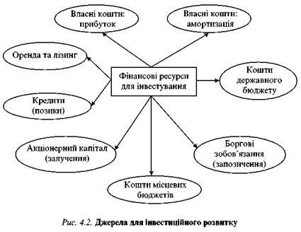 Базовим моментом розробки стратегії є обсяги фінансових ресурсів для інвестування. Джерелами коштів можуть бути (рис. 4.2):