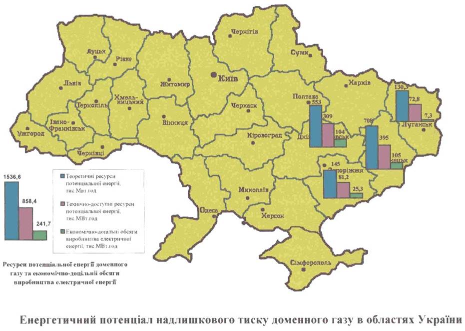 Енергетичний потенціал ресурсів потенціальної енергії надлишкового тиску природного газу в області України