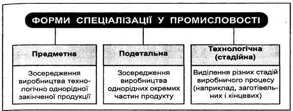 Рис. 1. Форми і зміст спеціалізації у промисловості