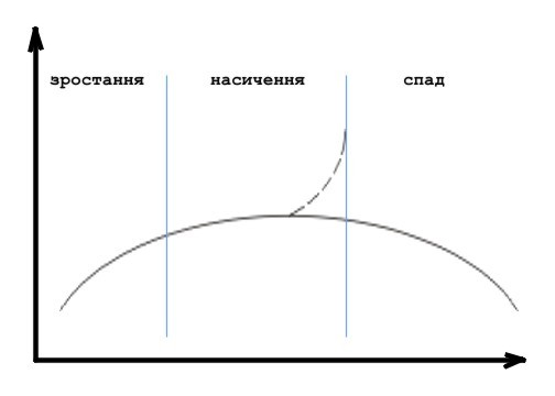 Перш ніж нова продукція займе свою нішу на ринку і збільшиться обсяг продажу, проходить 1 – 1,5 роки. Згодом продукція набуває популярності на ринку збут досягає максимуму. Обсяг продажу зберігається ще деякий час. Далі збут скорочується, спадає, дана продукція на ринку має змінитися на досконалішу.