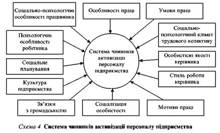 Ефект самоорганізації праці формується під впливом складної системи соціально-психологічних чинників, аналіз яких показує, що активізація трудової поведінки персоналу багато в чому визначається створенням умов для самовиявлення особистості (див. схему 4).