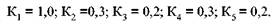 Кр К2, К3, К4, К5— відповідно коефіцієнти повної ефективної, психосоціальної ефективності, ефективності комунікації, професійної ефективності та сприятливості довкіллю.