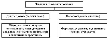 Завдання соціальної політики країни поділяються на довгострокові та короткострокові (див. схему 1 на с. 243).