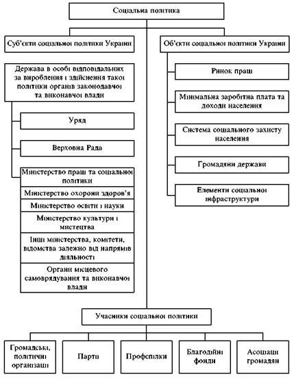 Соціальна політика як напрям діяльності держави має свої суб'єкти, об'єкти та учасників, що беруть активну участь в її проведенні .