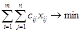 затрати на перевезення одиниці продукту від кожного постачальника до споживача позначаються сij, а хij -обсяг продукту, що перевозиться з кожного пункту виробництва в кожен пункт споживання, то сумарні витрати на транспортування будуть найменшими: