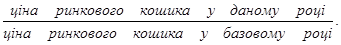 Індекс цін - відносний економічний показник, який характеризує зміну ціна ринкового кошика у даному році сукупного рівня цін:
