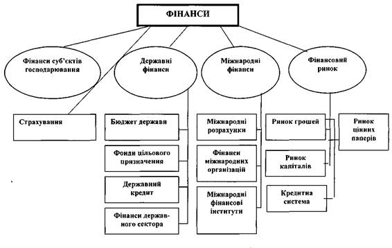 Практично фінансова система держави має свою внутрішню структуру, до якої входять фінанси суб'єктів господарювання, страхування, державні фінанси, міжнародні фінансові відносини, внутрішній фінансовий ринок. (див. табл.1).