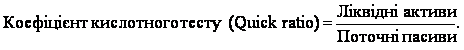 Коефіцієнт показує, яка частина оборотних активів може бути негайно перетворена в грошову форму й використана для погашення короткострокових зобов’язань.