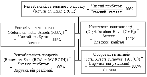 Аналіз рентабельності підприємства виконується на основі використання системи показників «Каскад» за методом, розробленим фахівцями фірми «Дюпон» (рис. 3.2).