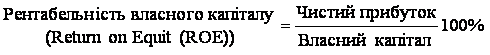 Рентабельність власного капіталу показує, яка віддача (норма прибутку) на вкладений власний капітал. Максимізація цього показника — головне завдання управління підприємством. Якщо чистий прибуток і власний капітал мають адекватну оцінку, то нормальною вважається рентабельність, не менша як 20 %.