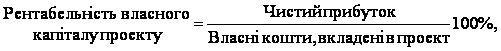 Для оцінювання впливу показника рентабельності власних вкладень на здійснення проекту рекомендується використовувати такі формули: