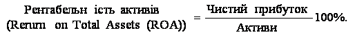 Рентабельність активів показує, наскільки ефективно використовуються активи підприємства. Якщо чистий прибуток та активи мають адекватну оцінку, то нормальною вважається рентабельність, не менша як 14 %.