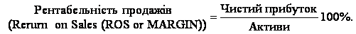 Рентабельність продажів показує, яку частку становить чистий прибуток у виторгу від реалізації. Нормальною вважається рентабельність, не менша як 30 % в умовах високого податкового тиску — 15 %.