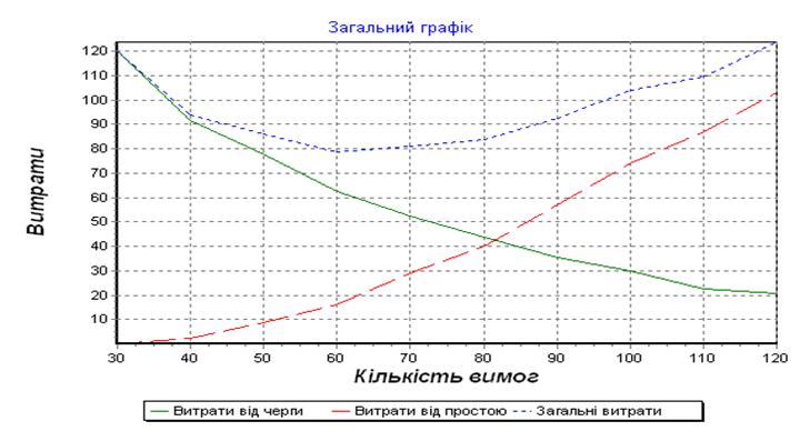 Крім того в результаті моделювання є можливість визначити витрати взагалі всієї системи з усіма видами послуг, загальні витрати приведені на рис.2.