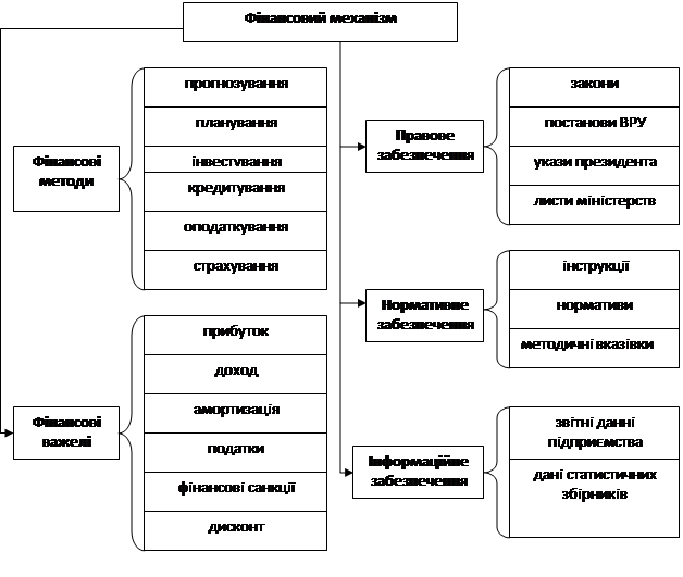 Процес управління фінансами базується на використанні механізмів фінансового менеджменту, складовою яких є правове і нормативне забезпечення управлінських рішень. Через розробку системи законів та інших нормативних актів держава проводить відповідну фінансову політику і здійснює регулювання фінансово-господарської діяльності підприємств економічними методами. (рис 1).