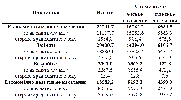 Розподіл населення за економічною активністю та місцем проживання у 2001 році (у віці 15–70 років, тис.) *[2]