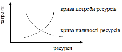 Рис. 1. Графік потреби і наявності ресурсів економічної безпеки
