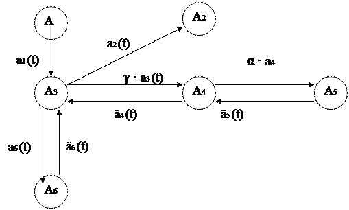 ã5 (t) – розмір грошових коштів, які повертаються в резервний фонд з автомата А5 в досліджуваний період t; ã5 (t) визначається сумою коштів, що інвестуються та доходом від інвестиційної діяльності.