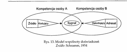 Модель спільного досвіду, або модель Шрамма. Вільбур Шрамм, перший із гуманітаріїв, хто адаптував технічну модель Шеннона до нетехнічних умов спілкування (1954). Він першим застосував термін спільного досвіду (shared experience) до процесу комунікації, тобто спільних позицій, ідей, символів, які об"єднують комуніканта й комуніката.