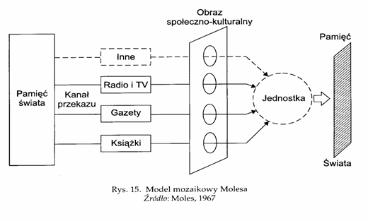 Абрагама Молес створив модель (1967), в основу якої поклав тезу, що сучасна культура є цілістю неупоряд-кованою, має мозаїчну структуру з елементами різної вартості. Така культура є продуктом функціонування ЗМК. Ця культура випливає з надбань минулого, колись сучасного, а сукупність її висловлювань творить суспільно-культурний образ, який формує сучасний споживач інформації.