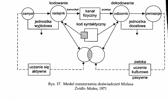 Модель розширеного досвіду, або модель Молеса (2). А. Молес (1971) розширив модель Шрамма (1954), пов"язавши її з моделлю Шеннона. Важливим є запровадження на моделі елемента самонавчання. Отримувач інформації може поступово під упливом комуніканта розширювати свій код чи знання, тим самим він розширює свої можливості щодо спілкування.