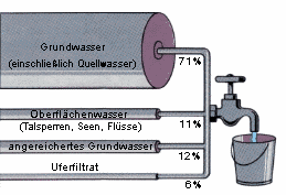 Wasserverbrauch Der Mensch kann ohne Wasser nicht überleben. Doch er neigt dazu, verschwenderisch damit umzugehen. In den letzten 100 Jahren ist der tägliche Wasserverbrauch von einem Menschen von 20 Liter auf 140 Liter gestiegen. Viele Leute können sich diese Zahl nicht vorstellen. Darum hier eine Verdeutlichung, ein Mensch braucht pro Tag ca.: 40 L. Wasser für das Baden oder Duschen, 30 L. Wasser für das Waschen der schmutzigen Wäsche, 30 L. Wasser beim Gang auf die Toilette, 13 L. Wasser für die Körperhygiene (z.B. Hände waschen) 12 L. Wasser beim Geschirr spülen, 12 L. Wasser für die Bewässerung der Garten- und Zimmerpflanzen,' Insgesamt kommt man auf 140 L. Wasser pro Person am Tag. Obwohl ein gesunder Mensch täglich nur ca. 2,5 L. Wasser zum überleben braucht. Davon werden ca. 1,3 L. getrunken, 0,9 L. mit fester Nahrung aufgenommen und 0,3 L. entstehen bei der Energieproduktion des Körpers. Doch nicht viele Menschen auf der Erde können sich so eine Verschwendung leisten, denn in vielen Länder herrscht Wassermangel, z.B. in Ländern Afrikas. Dort müssen die Menschen mit einigen Litern Wasser täglich pro Familie überleben (putzen, kochen, waschen, trinken). In Industrieländern hingegen gibt es genügend Wasser, dass jedoch von den Bürgern bezahlt werden muss. Außerdem wird es stetig von Kläranlagen gereinigt und somit immer wieder verwendet. Doch einige Länder haben keine Probleme mit dem Wasser. Sie sind reich an Quellen und Brunnen, aus denen seit mehreren Jahrhunderten Wasser fließt. Dieses Wasser wird nicht bezahlt und muss nicht gereinigt und wiederverwendet werden, da die Frischwasserquellen nicht austrocknen.
