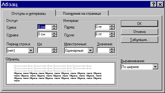 Для форматування абзаців використовується команда «Абзац .» у меню «Формат», після виконання якої з’являється вікно діалогу: