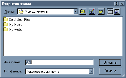 Открыть – відкривання існуючого документа, тобто файлу з диска. На екрані з’являється діалогове вікно Открытие файла. |