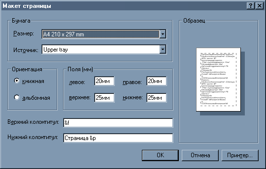 Макет страницы – дозволяє налаштувати параметри сторінки, на якій буде надруковано документ. При виконанні команди на екрані з’являється діалогове вікно Макет страницы. |